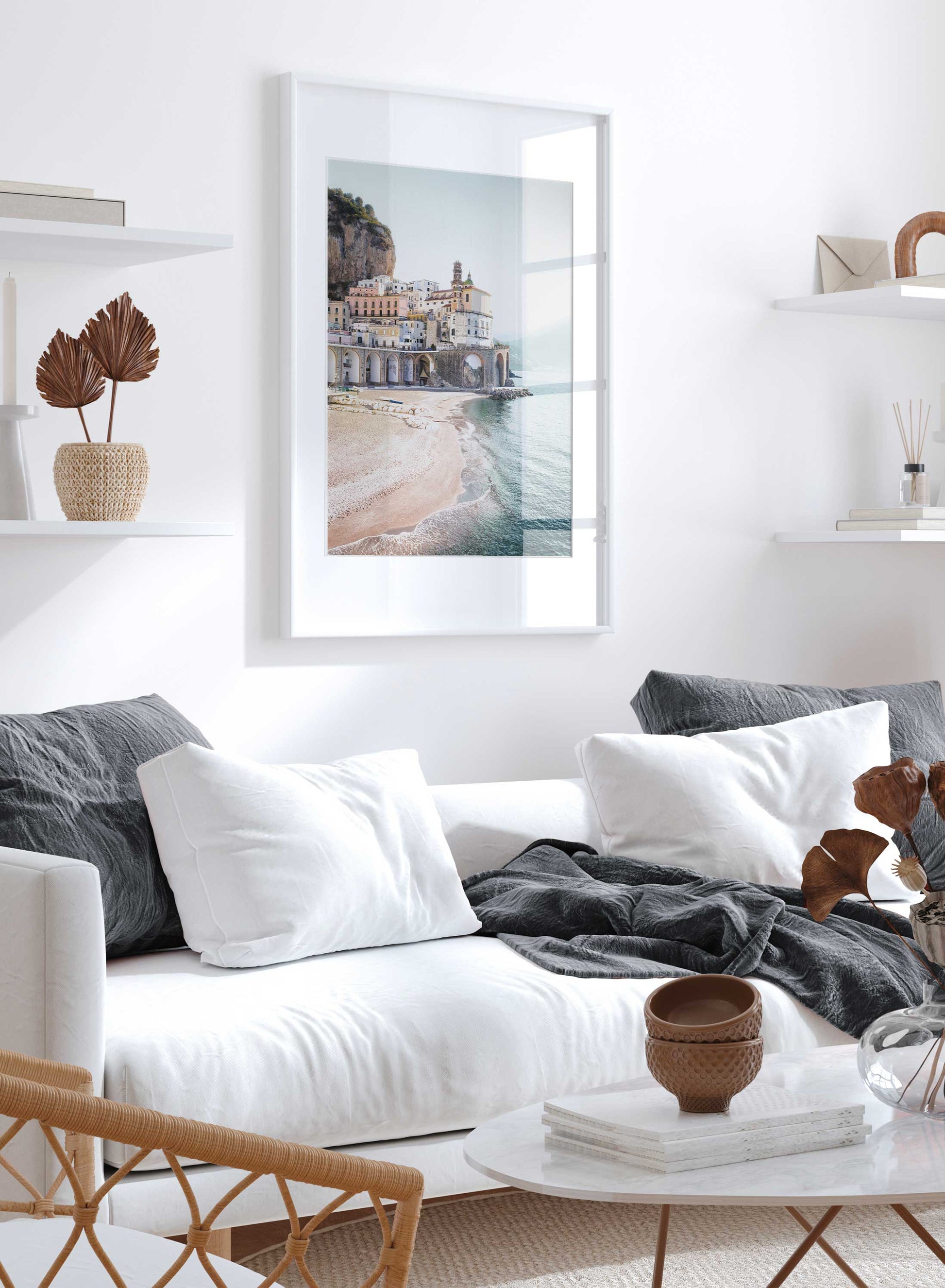 Have you ever visited Amalfi, in Italy? Let this sublime destination come to you through this beachy photography poster of a seaside town built on a tall cliff overlooking a beautiful sandy beach. With an art print this captivating, you can almost hear waves and feel the sand under your feet!